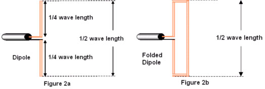 In addition, if a full wave length dipole is folded as a rectangular shape, such long, narrow rectangular frame is called folded dipole. Note if a folded dipole is also half wave long, it is called half-wave folded dipole (Figure 2b)